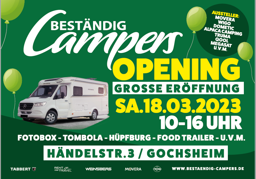Große Neueröffnung am 18.03.2023 von Beständig Campers in der Händelstraße 3 in Gochsheim
