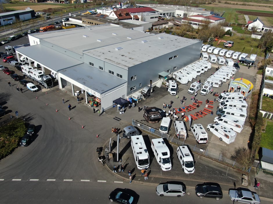 Wer nicht warten möchte, kann sich gerne bei uns auf dem Gelände und in der Ausstellungshalle eine große Auswahl an Reisemobilen, Camper Vans und Wohnwagen anschauen.